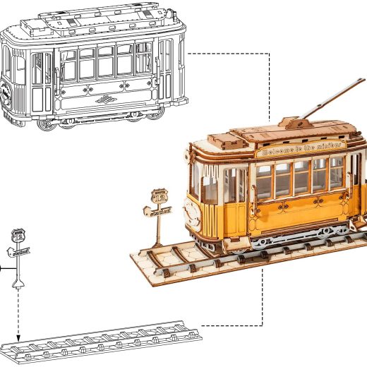 ROBOTIME 3D Wooden Puzzle for Kids Construction Model Kit to Build Wooden Tramcar Puzzle Kits as Birthday Gift