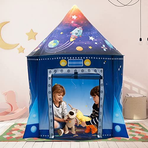 Rocket Ship Kids Play Tent, Astronaut Space Pop up Play Tent, Indoor Pretend Kids Tent for Fun, Gift Tent for Kids as Cool Space Toys for 3 4 5 Years Old Girls Boys Toddlers , Birthday Gift Playhouse
