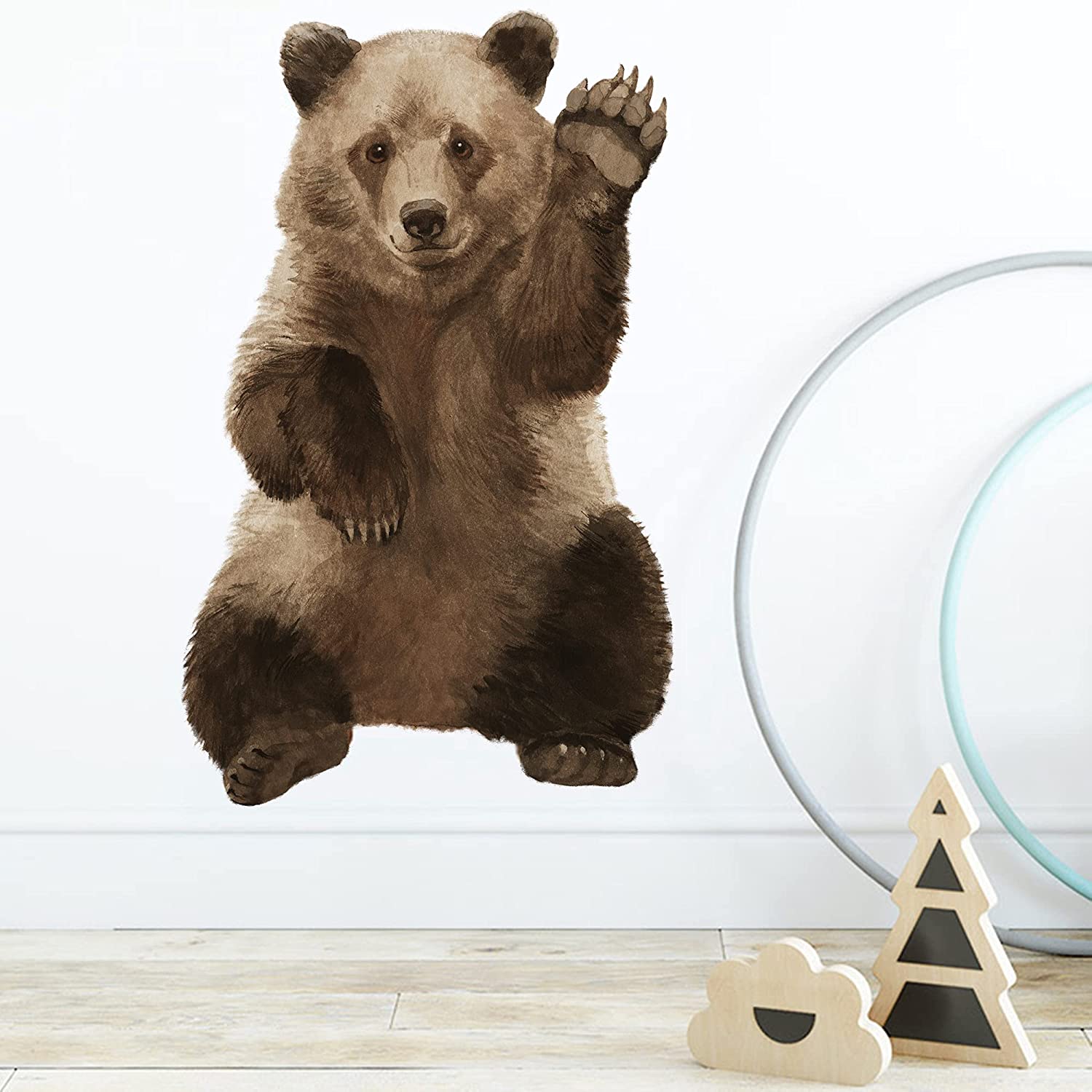 EXCELLENT MATERIAL:The removable brown bear wall sticker is made of premium ECO-friendly waterproof PVC.This home decor is non-toxic and safety so rest assured to use them. GREAT VALUE: This hand painted wall decal’s finished size is approximately 22.8 x 14.2.The decoration is easy to stick and remove without harming the surface of the wall.If you use it in the correct way,this bear wall sticker can last for long times without peeling, wrinkling or fading.This sticker is very suitable for door,cabinet,nursery,bedroom,playroom,living room,childrens room,office,shop.It’s also a great gift for your kids,grandchildren,neighbor and friends. ENJOY IT: Come on!Add some color and fun to the life!Let’s wake up the wall and make the room bright and lovely with this cute bear pattern.This lovely bear is also care-free cause they don’t require to be fed.On the other hand, these animal stickers can be used in early education to help baby know animals in nature and accompany kid’s childhood.And if your pet is lonely during the day, let it accompany your pet. EASY TO USE: This premium decal is convenient to use.Just peel them off carefully and stick them on the smooth,clean,dry and dust-free surfaces with your hands.If there are some bubbles,you can use a scratch card to remove the bubbles or use a needle to pierce the small bubbles and smooth them, it will not affect the overall paste effect.If you purchase this lovely bear wall decal for your kids,we believe they can put it up themselves with no difficulty. ATTENTION: Please check the size before buying.Make sure the wall surface is smooth,clean,dry and dust-free.When removing the wall sticker,you can use a hair dryer to heat the adhesive, and then use a knife to lift the corner of the sticker gently and peel it off slowly.Feel free to contact us if you have any questions.
