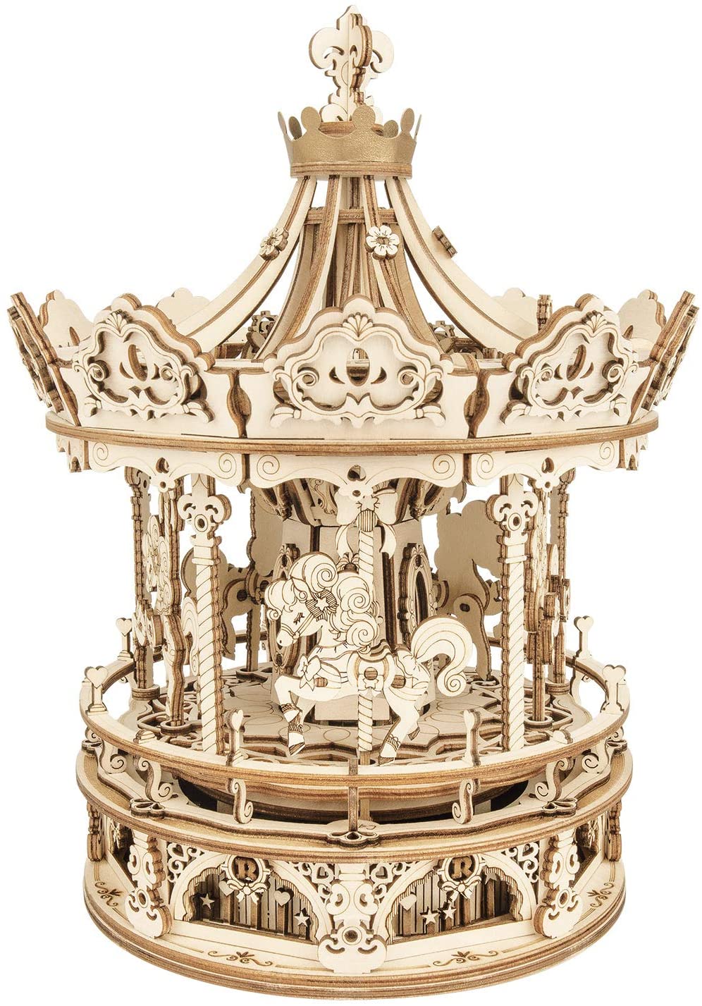 ROKR 3D Wooden Puzzle Carousel Model Building Kits Rotating 5-Horses Music Box Christmas Birthday Gift for Kids Girls Daughter Wife Girlfriend