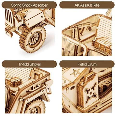 ROKR 3D Wooden Puzzle for Adults-Mechanical Car Model Kits-Brain Teaser Puzzles-Vehicle Building Kits-Unique Gift for Kids on Birthday/Christmas Day(1:18 Scale)(MC701-Army Field Car)