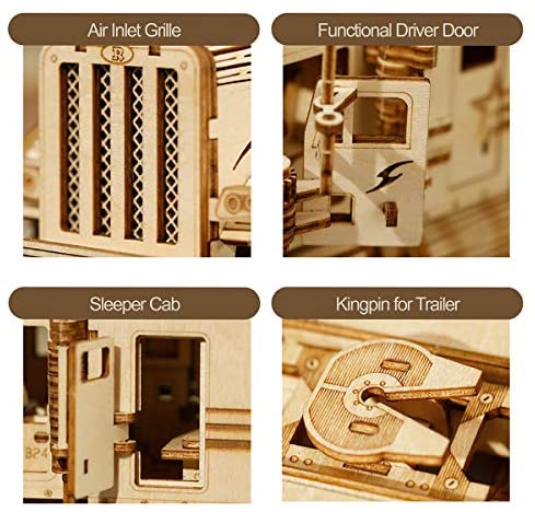 Scale Model VehicleIt is inspired by the evolution of road vehicles back to the 19 century.Characteristic vehicles of the era are replicated into the mini scale models with detailed structures. No Glue NeededUnique Mechanical 3D Puzzle,laser-cut ply wood,no tonxic,environmental friendly,smooth wooden board.All pieces are pre-cut,no glue needed.The interlocking mechanisms are pretty ingenious. Detailed English InstructionMaking this mechanical model toy requires not only attentiveness but also patience.Feel the pride of assembling this entire IQ toy set-up with your very own hands. Creative GiftWhat a fascinating thing to see the mechanical miracle coming to life by your own hands.Best Holiday gift for your boyfriend,girlfriend,husband,wife who is model builder or puzzle lover.It looks so cool and creates a decent challenge for an adult. Perfect DecorationThe 3D wooden puzzle has decorative designs that look captivating in the finished product.It is a challenge for both eyes and hands,and also a perfect display for stylish collections!