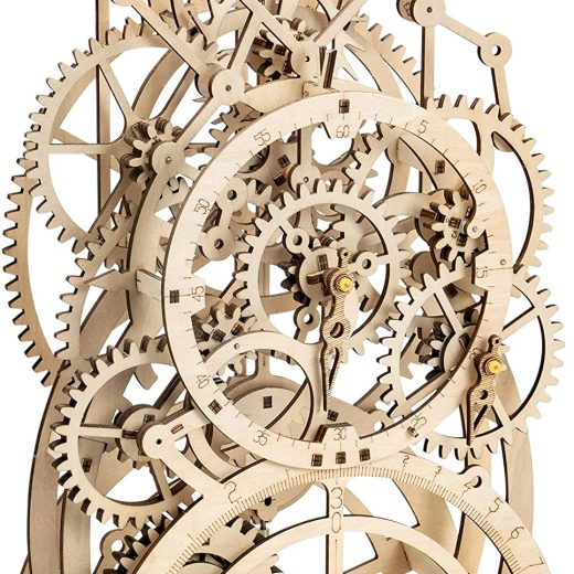 Wood 3D Wooden Pendulum Clock Craft KitThis cool Pendulum Clock Model Building Kit is assembled by 170 wooden pieces and need you spend 4-8 to work it out. It does require periodic winding up. Do-it-yourself Clockwork Wooden Puzzle KitThese high quality model kits are self propelled clockwork, no battery needed. Some wax and the tools provided will make them move smoothly. All pieces are pre-cut, easy to pop out, all you needed is time and patience, putting them together one by one following the instruction, you will enjoy every steps of making these amazing puzzles. Recommended Age:14+Although the recommended age to complete alone is 14+, children under 14 have can certainly enjoy the challenge if they are good with hands and brain, of course some may need help from the adults. A great holiday project which will fine motor skills, improve handmade ability. Creative Activity for Brain and MemoryThese 3D wooden Mechanical Clockwork Puzzles require minimum of 4 hours of DIY full of fun. The puzzle activities have been scientifically proven to improve memory, relieving stress, improve visual-spatial reasoning skills and increase IQ. Perfect Gifts for Puzzle LoversExcellent gift for puzzle lovers to enjoy wonderful puzzle solving experience and creative design. Package includes everything you need to make this amazing model.