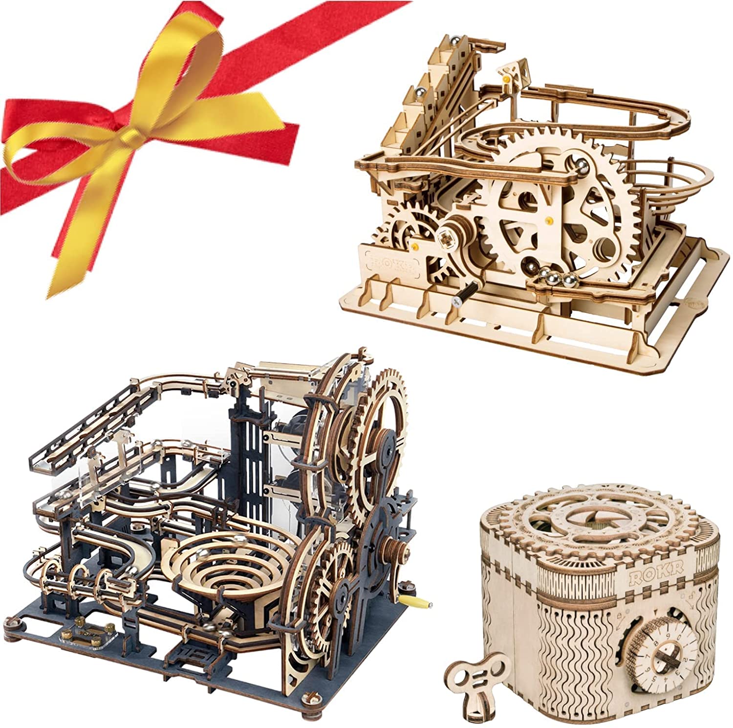 ROKR 3D Wooden Puzzles for Adults Bundle – 2 Wooden Marble Run Sets & 1 Treasure Box for Teens & Adults