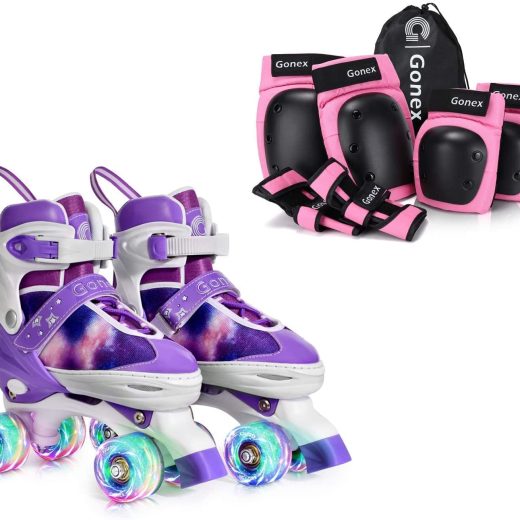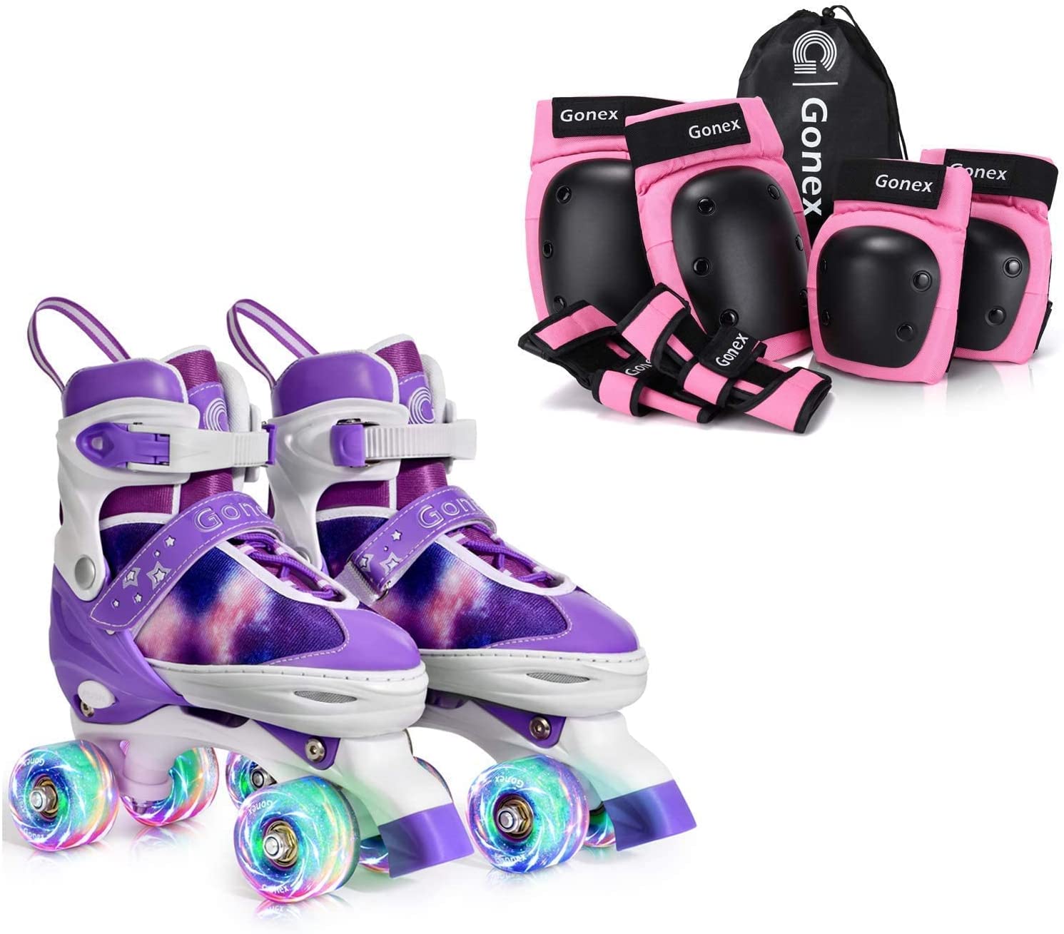 Roller Skate for Kids L Size with 6 in 1 Protective Gear for Youth/Adult Pink – M Size