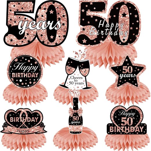 Happy 50th Birthday Decorations Table Honeycomb CenterpieceMaterial:paperColor:rose goldCount:8pcsapplication:Very suitable as a decoration for you…