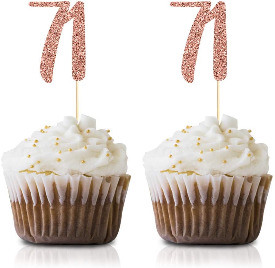 Rose Gold 71st Birthday Cupcake Topper, 24-Pack Number 71 Glitter Happy Birthday Party Cupcake Toppers, Decorations