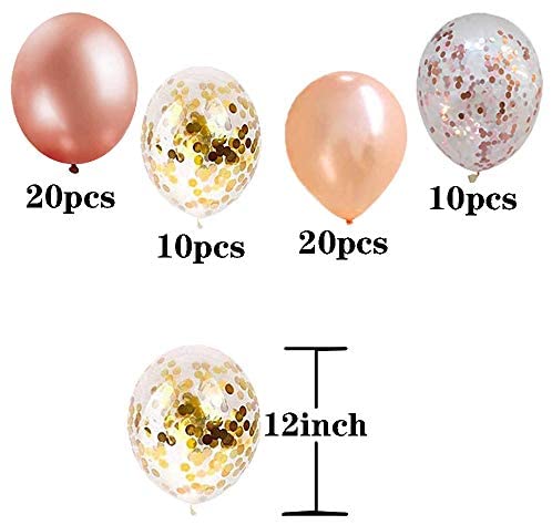 Rose Gold Confetti, Gold Confetti + Rose Gold balloons Party Set(60Pack) 12Inch Latex Balloons for Birthday Baby Shower Wedding Party Decorations