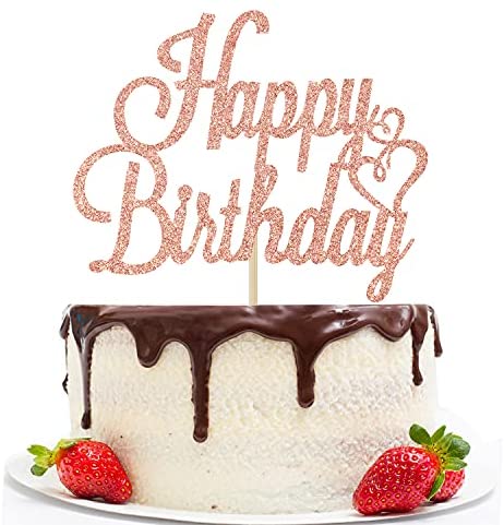 Rose Gold Glitter Happy Birthday Cake Topper, Birthday Party Decorations Supplies