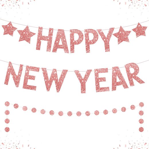 SHINY REAL GLITTER HAPPY NEW YEAR BANNER WITH CIRCLE GARLAND – Looking for a luxurious new years decorations This real rose gold glitter happy new …