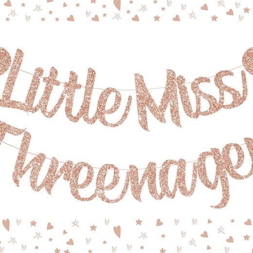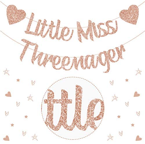 Rose Gold Glitter Little Miss Threenager Banner Garland for Baby Girls Third Birthday Decorations 3 Year Old 3rd Birthday Party Supplies