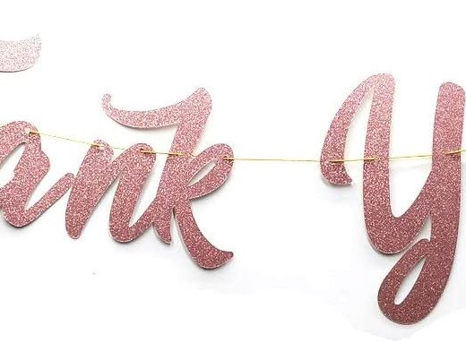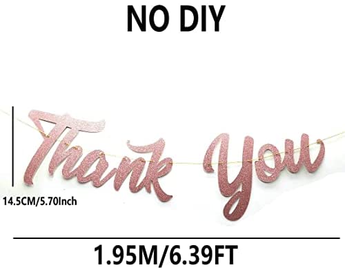 Rose Gold Glitter Thank You Banner and signs for employees Engaged Wedding – Bridal Shower Bunting Thanksgiving Photo Booth Props Veterans Pre-Strung