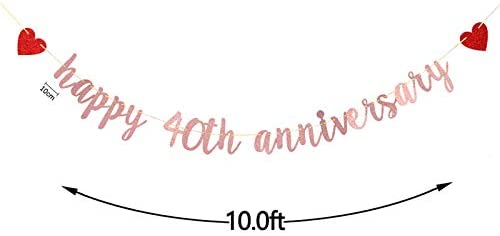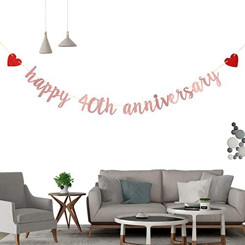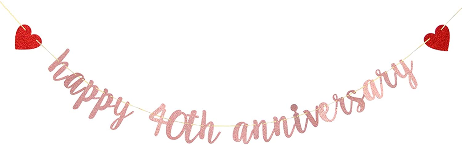 Rose Gold Happy 40th Anniversary Banner – for 40th Wedding Anniversary / 40th Anniversary Party / 40th Birthday Party Decorations