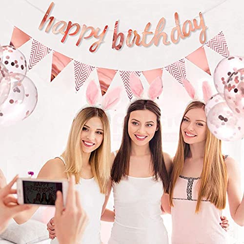 Rose Gold Happy Birthday Party Decoration Set Rose Gold Happy Birthday Pennant Flag banner and 15pcs Pink White Rose Gold Tassels Garland for Birthday Party Decoration