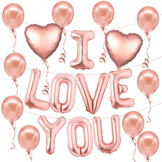 Rose Gold I Love You Balloons Set – Pack of 20 | Love Balloon Letters for Valentines Day Decoration | Love Balloons for Romantic Decorations Special Night | Valentines Day Decor, Birthday, Anniversary