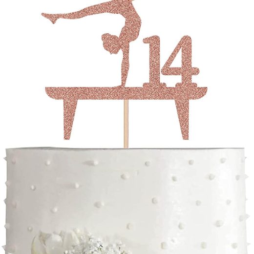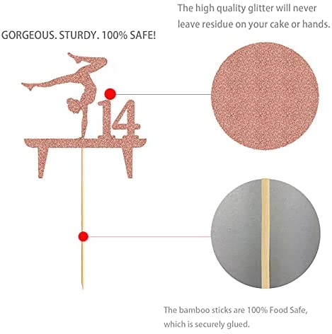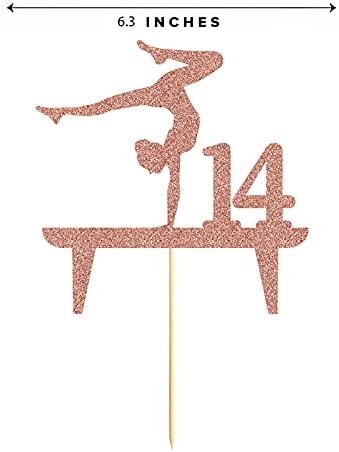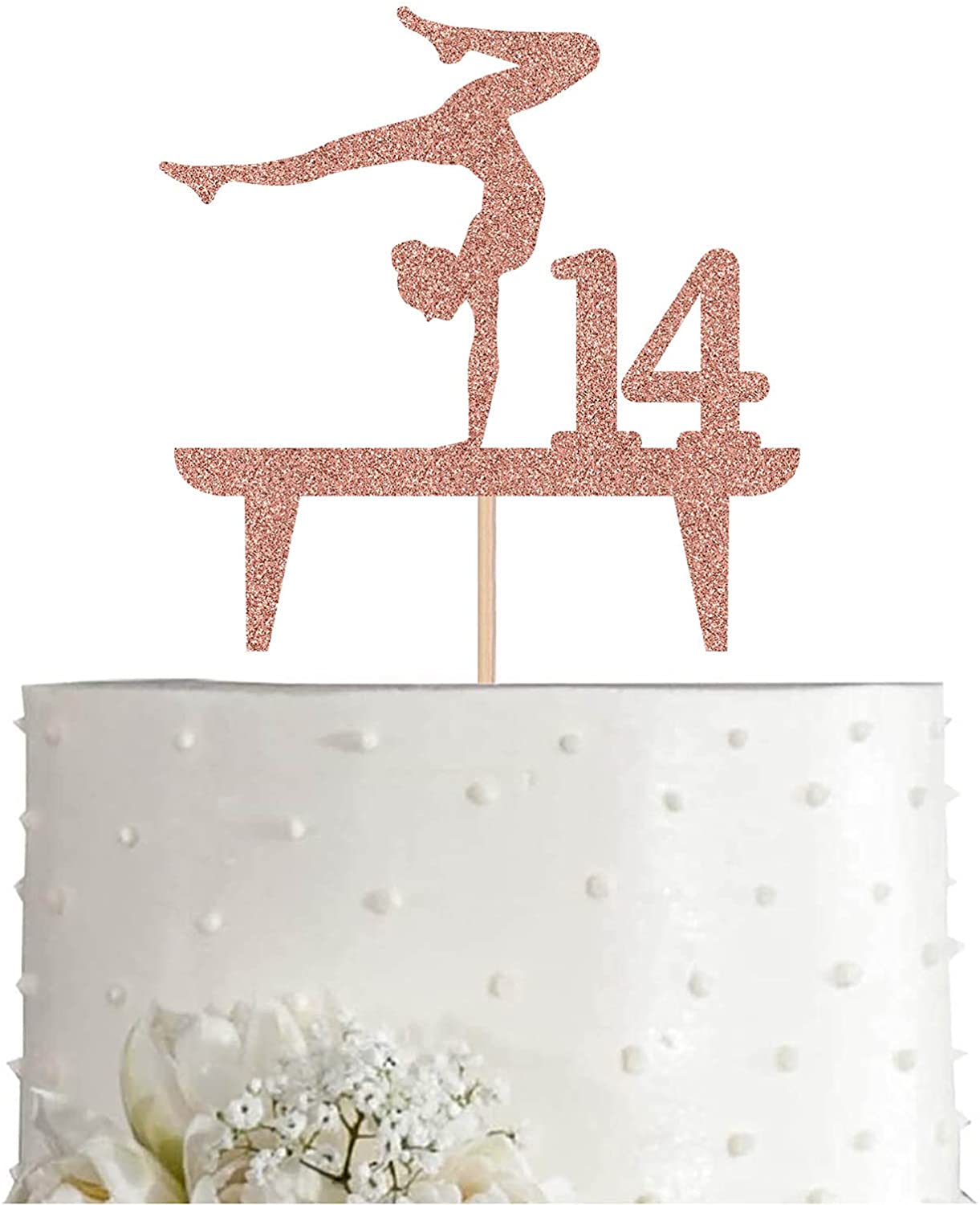 Rose Gymnastic 14 Cake Topper, Girl Rose Gold Glitter Gymnast 14th Birthday Party Decoration