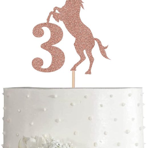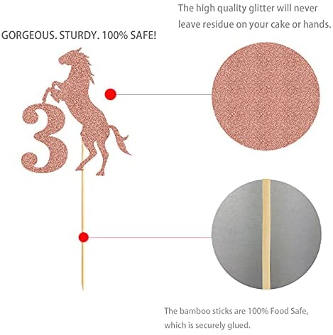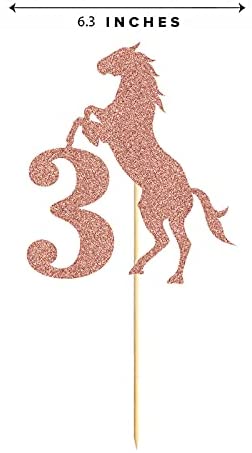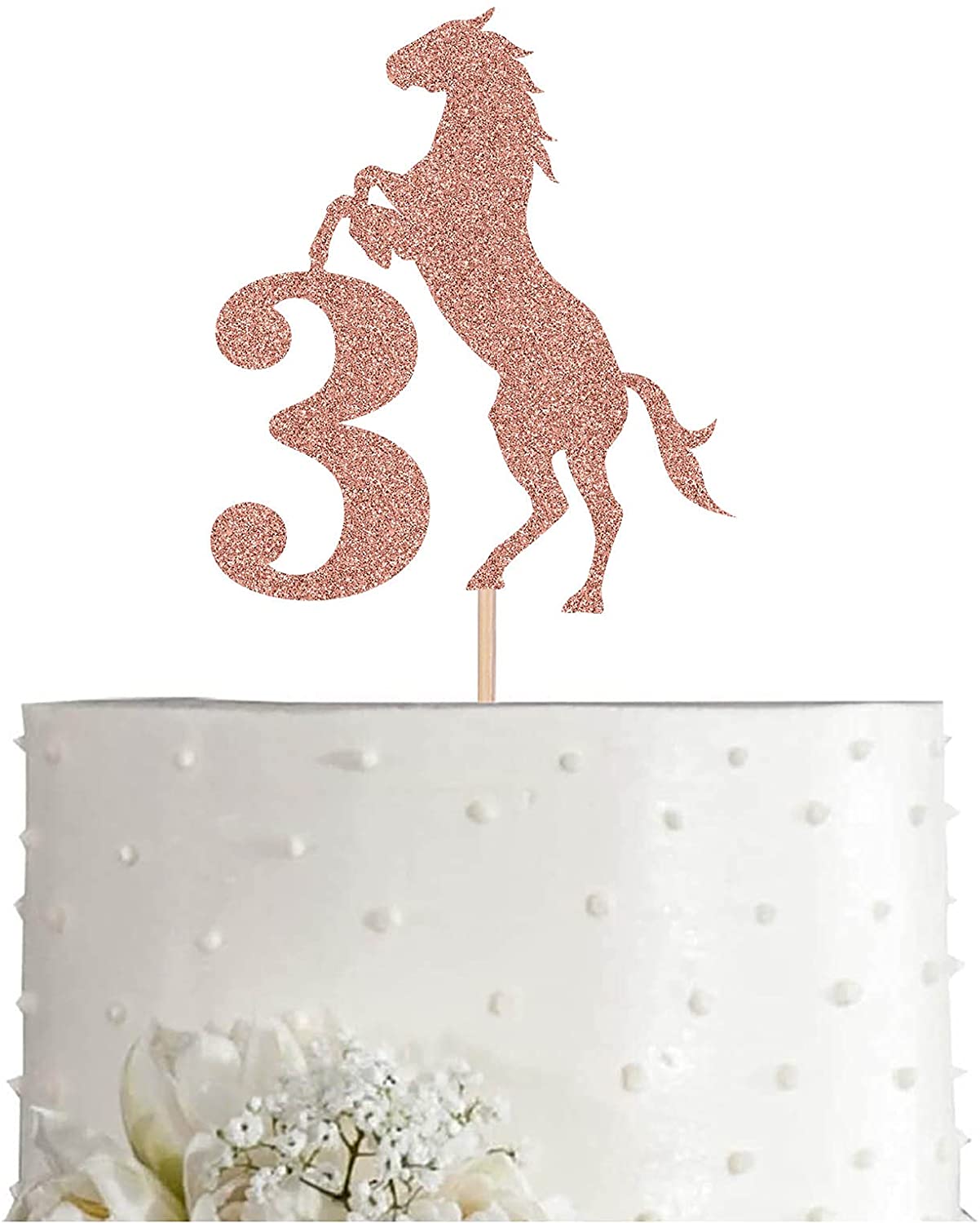 Rose Horse 3 Cake Topper, Rose Gold Glitter Horse Happy 3rd Birthday Decoration