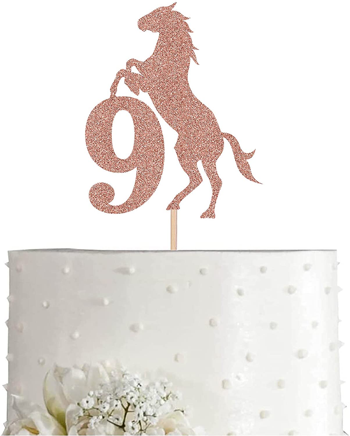 Rose Horse 9 Cake Topper, Rose Gold Glitter Horse Happy 9th Birthday Decoration