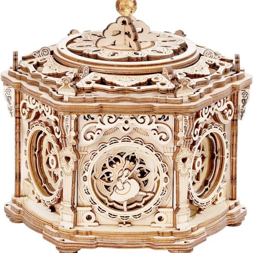 [ Musical Model Kit ] – : Exquisite design of this 3d wood craft is reflected in the flower window of Renaissance and ballet dancer wooden statue on each side ,lifting rotary at the top. When music goes on,the innder layer will rotate : SWAN LAKE. [ How To Play ] – : Rotate the top switch, one small hidden jewelry box will come to your sight;rotate the top layer, 4 small hidden storage with removable black velvet pads will appear, where you can place small items, like rings/earings .This is a good choice to surprise your lover/family. [ Detailed and Clear Instruction ] – : The package include clear English manual, pre-cut wood sheet, accessories, wax for lubrication, sandpaper. Be patient and follow the instructions, you will receive delicate craft kit quickly. [ Good Gifts ] – : Why not choose such elegant, musical and brain-teaser 3D wooden puzzle to your daughter/girlfriend/family as gift The end result is a stylish decor to home. Most creative gift to keep persons feel absorbed and proud. [ Memorable Family Time ] – : Assembling this mechanism together is challenging and absorbing. It practises your eye-hand coordination, logical thinking. A must-have kit to entertain with family!