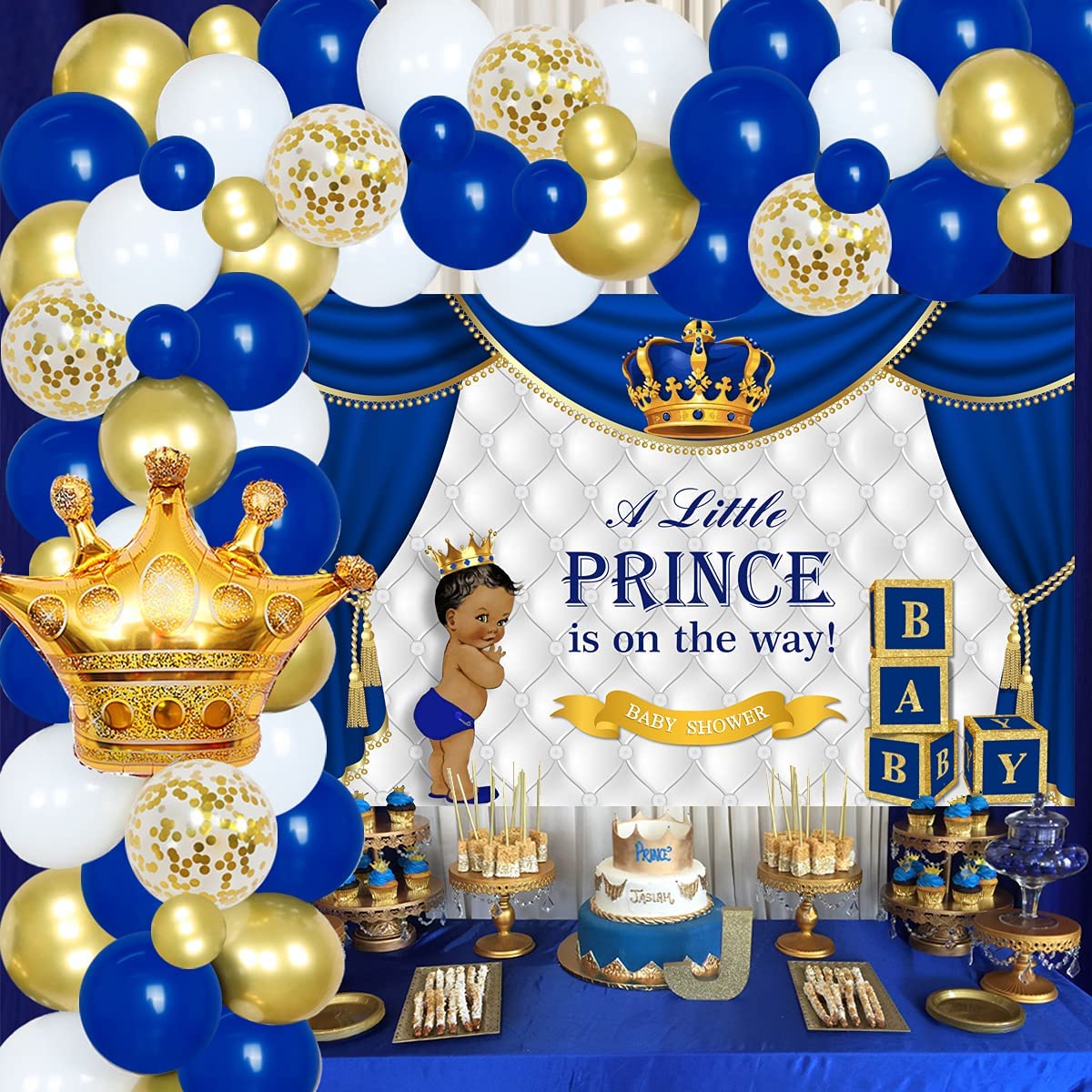 Royal Prince Baby Shower Decorations Balloon Garland Kit Blue and Gold with Royal Prince Baby Shower Backdrop Photography for Boys Girls Little Prince Baby Shower Birthday Party Supplies