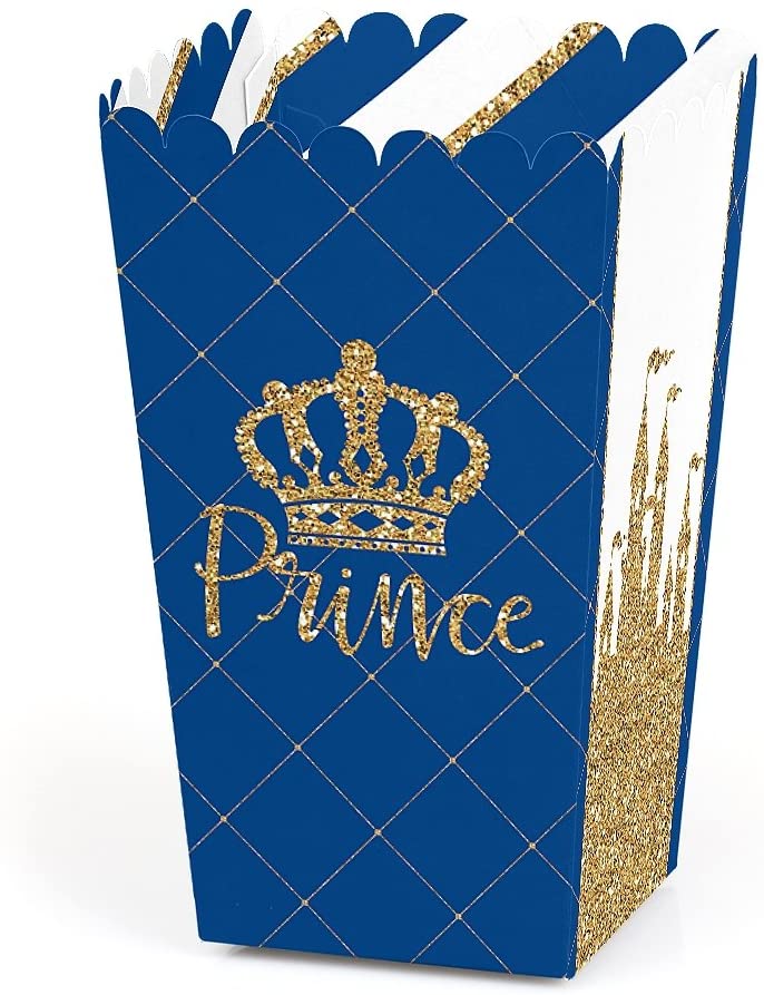 Royal Prince Charming – Baby Shower or Birthday Party Favor Popcorn Treat Boxes – Set of 12