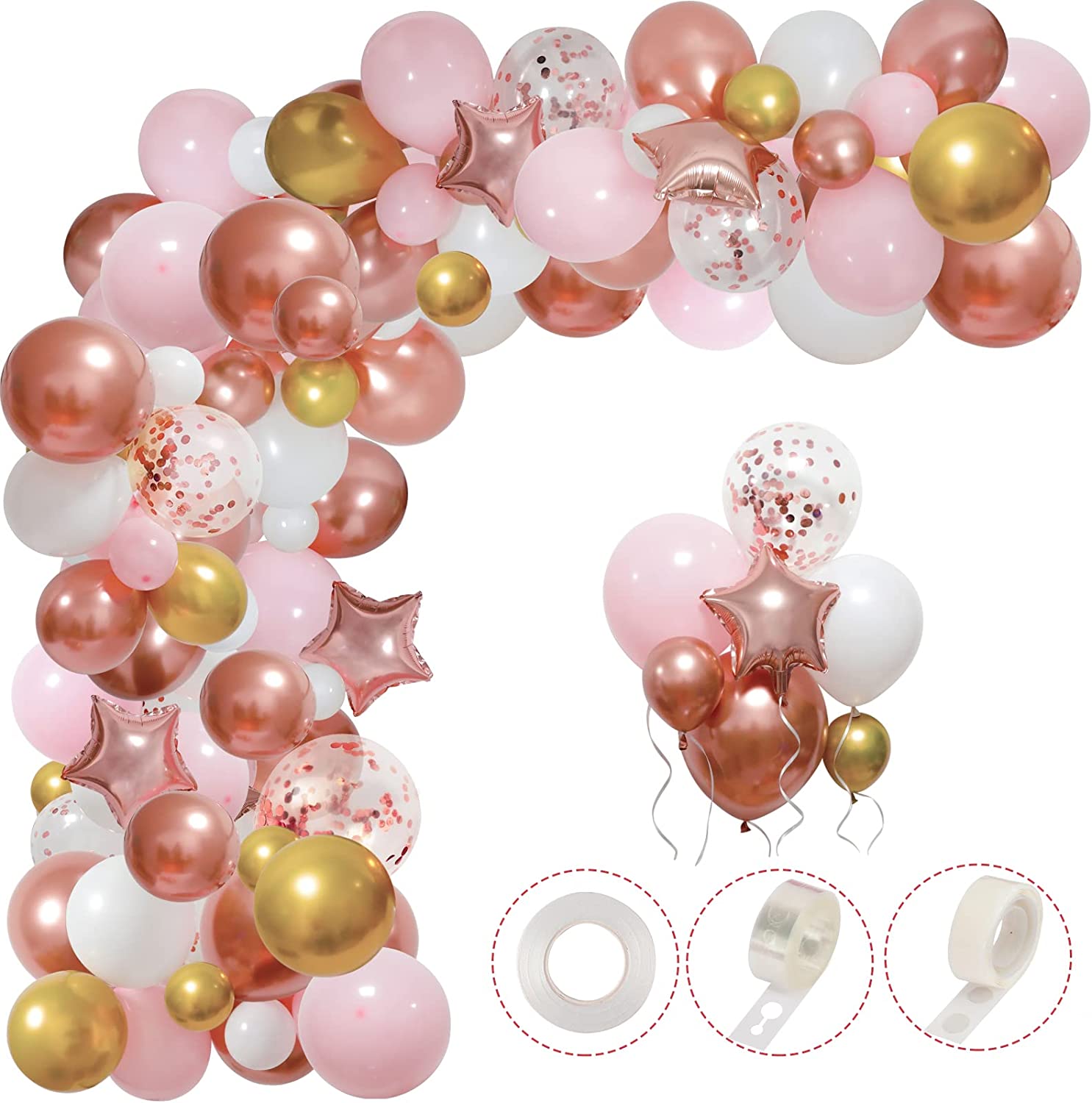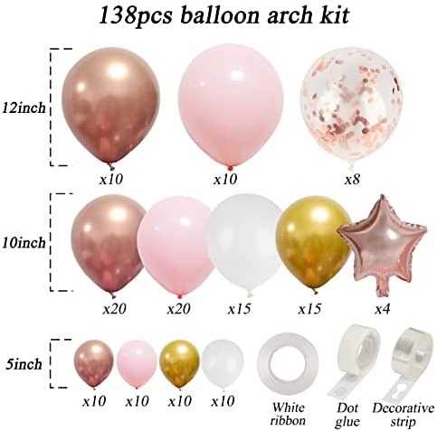 RUBFAC 138pcs Rose Gold Pink Balloon Garland Arch Kit for Birthday Party Baby Shower Wedding Decorations