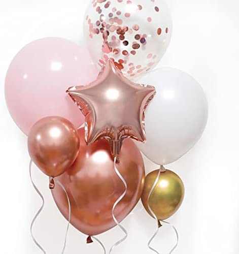 Rose gold balloon garland kit: The rose gold balloon arch kit contains 138 pieces in 3 sizes, which can meet most of your daily needs. They are also very good decorations for parties. Star aluminum foil balloons: Our set includes rose gold confetti balloons and rose gold star aluminum foil balloons. These beautiful balloons can better decorate your balloon arches. Easy to assemble: Our balloon garland kit can be assembled by inexperienced people. We provide you with one dot glue, ribbon and decorative strip. They can save your time and energy and help you make balloon arches more easily. Wide Application: The rose gold balloons kit can be used in any festivals and parties, such as baby showers, birthday parties, bachelor parties, weddings, etc. They will add a fairy-tale sweet atmosphere to your party venue. High Quality: These balloons are made of natural latex, which is safe and non-toxic.The latex balloons can support air and helium. Please do not inflate the balloon more than 90% and pay attention to avoid high temperature, sharp objects and excessive friction.
