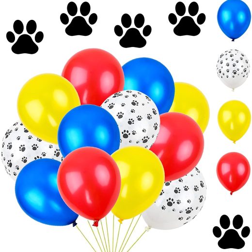 Package includes: 36 12-inch dog paw print balloons with red, yellow, blue, dog paw balloons. Vivid colors: red, yellow, blue, dog paw balloons for…