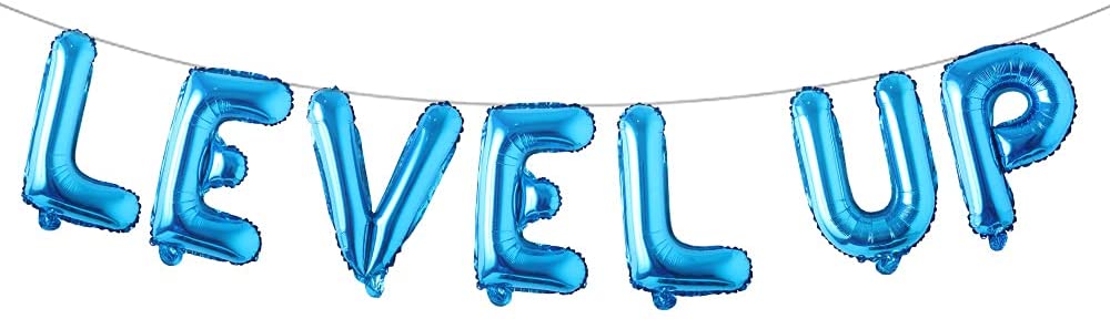 RUIANSI 16 inch Multicolor Video Game Birthday Party Decorations for Boy Gamer Level Up Game Balloon for Gaming on Birthday Party Supplies Happy Birthday Banner (Level Up Blue)