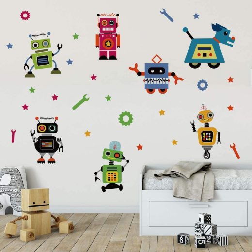Elements included 7 different robots and parts. Cute educational robots wall decals for your classroom or kids room. Material: Vinyl.Non-toxic, environmental protection, waterproof. Easy to apply, remove and reuse without leaving damage or residue. Very easy to assemble and great focal point in your classroom, playroom, kids room, baby girls and boys room. It can be stuck to walls, furniture, tiles, mirrors and windows, any flat surface. Do not stick to any powder coated wall, irregular surface, oil and dust surface. DIY facilitate easier, richer color pattern. Just peel and stick and give your house wall a change.
