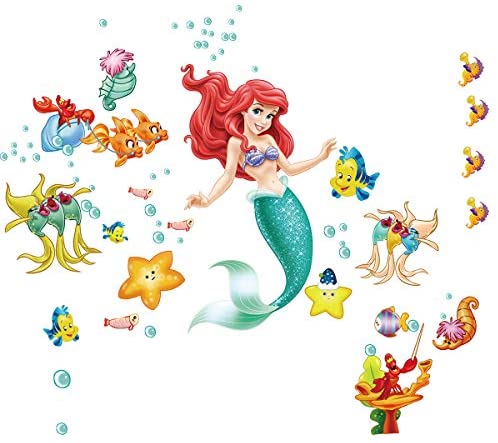 Runtoo The Little Mermaid Wall Decals for Girls Ariel Wall Stickers Princess Fish Wall Décor for Girls Bedroom Baby Nursery