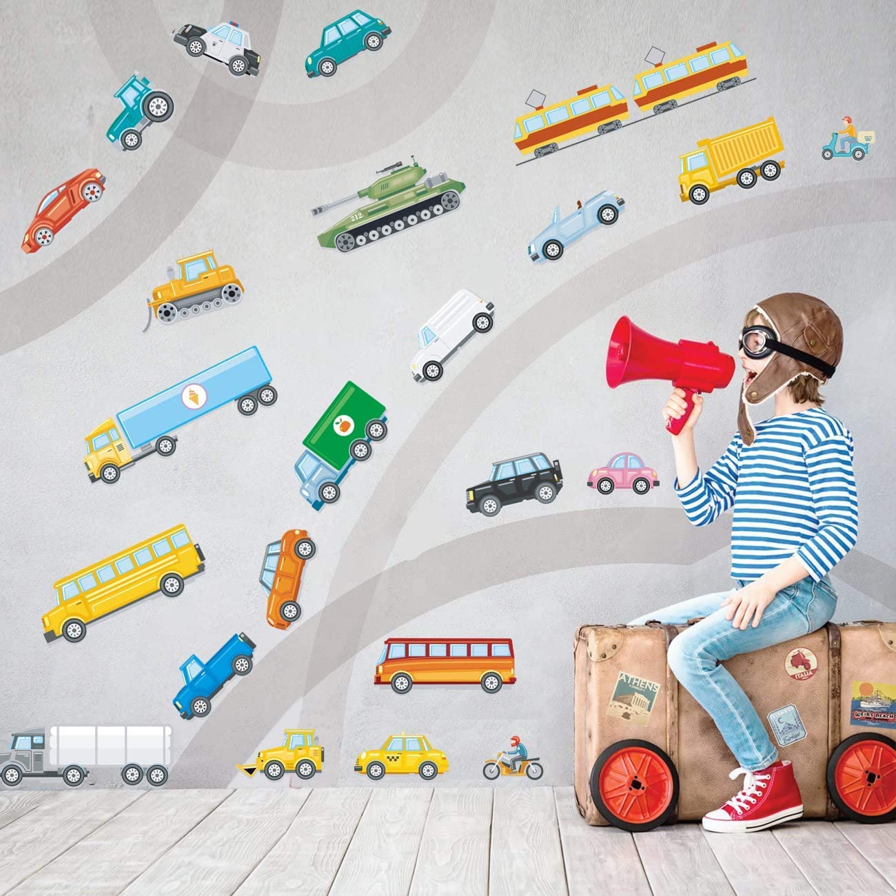 Runtoo Transports Wall Decals Car Vehicles Wall Stickers Kids Nursery Boys Playroom Decor