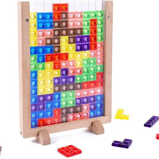 Vertical Brain Teaser Russian Blocks Game This block-arranging game comes with 42 pieces plastic blocks in 6 traditional shapes and 7 colors, a vertical transparent plastic game board with wooden frame and stand. Classic Childhood Game It’s a classic game that we grew up playing for hours, filling up the entire lines with blocks, this perennial favorite of the video game is now being remade as a tabletop board game. It can also be used as tangram blocks to create patterns. Skills and STEM Development Great challenge of eyesight & thinking, improve childrens hands-on ability, hand-eye coordination, patience, logical thinking, active their brain function. Inspire children’s imagination and intellectual development while bringing them fun! High Quality and Safe materials The blocks are made of ABS plastic, smooth to touch and safe for your kids, the color is bright and eye-catching. Made of quality solid beech wood, the game board is sturdy so it will last for your kids to play again and again. Great Family Game and Ideal Gifts for All Ages The brain teaser toy is a board game that perfect to play indoors with your friends and family. It is great for all ages to play with, helps increase the intelligence of the kids, to release the pressure of the adults as fidget toy, to help prevent a decline in memory of the elderly.