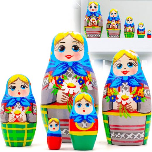 EXCELLENT DESIGN: girl with bouquet of wildflowers – cornflowers, spikelets and chamomile flowers ONLY ECO-FRIENDLY MATERIALS: natural wood, hand painted water-based paints, finished with varnish UNIQUE GIFT FOR EVERYONE: russian dolls are the great home decoration and educational toy for kids PERFECT DIMENSIONS: largest doll is 3.5, smallest is 0.8. Set of matryoshka dolls includes 5 pcs AEVVV is proud of high-quality russian matrioskas, if you arent satisfied well refund the purchase