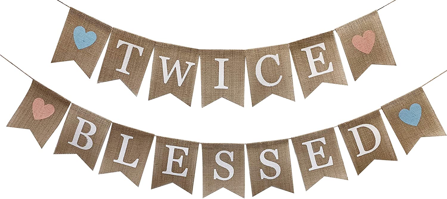 Rustic Burlap Twice Blessed Banner,Twins Baby Shower Gender Reveal Party Supplies and Decorations,Pregnancy Photo Prop,Twin Boys Girls Bunting for Nursery Room Decor