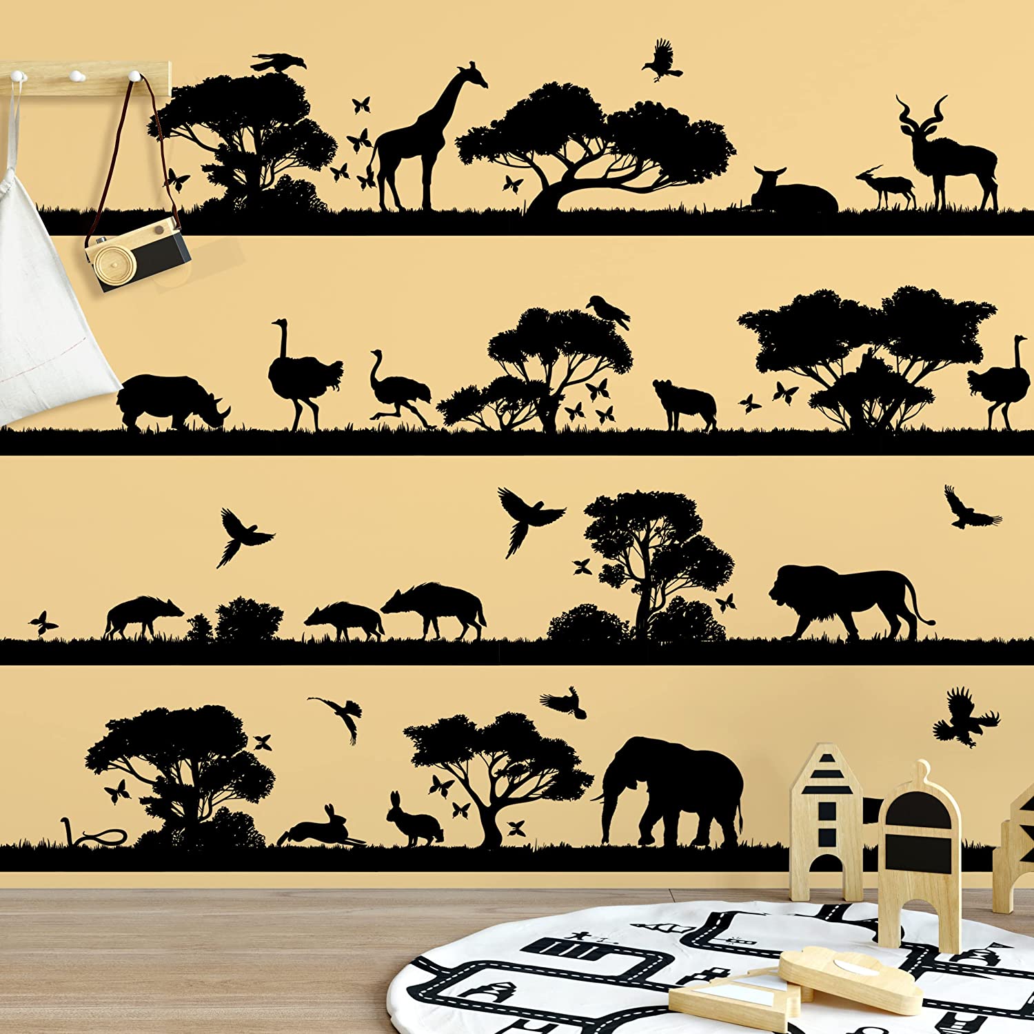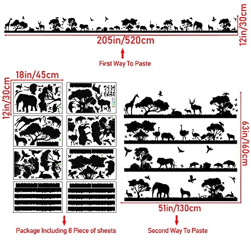 High Quality: Made of high-quality vinyl material, non-toxic, environmentally friendly and waterproof. Easy to apply and remove without leaving residue or damaging the wall.Compared with buying paint, it is cheaper and better to use. Including 8 piece of sheets; Each Sheet Size: 12inch x 18inch. Black Jungle Tree Animals Decoration: Jungle animals tree wall sticker is safe for your family and our planet. It is an ideal choice for decorating living room, dining room, bedroom, etc. It will add a special black color to your room office or the room you want to make it special. The unique texture of the wall decoration makes it appear vivid and beautiful. Monotonous walls come alive, creating an elegant and warm atmosphere. Add vitality to your living room and make you feel comfortable. Peel and Stick Easily: Our animals tree stickers are cut into several fragments, you must be patient to DIY, there are so many piece and you have to stick them one by one,DIY Wall Stickers, install it by yourself . it will take you several hours. Just peel and stick, no tools are required.Reusable, repositionable, removable and no residue left. This is extremely easy to do and can be done with one person, but two people is recommended. Wide Application: Black animals tree butterfly flower wall stickers are very suitable for home decoration. They can be used in childrens bedrooms, nurseries, playrooms, living rooms, offices, kitchen, washroom, homes, TV backgrounds, etc. Decorate your room with animals, tree and flying butterflies, which will bring more fun to children. It is also a good sofa background and TV background decoration! Perfect Gift: Tropical animals zoo tree wallpaper mural home decoration accessories will be the best gift for kids, friends, and ideal for home decoration and self-care. Your kids, friends, roommates or family can also use it. Exquisite and special design makes your room unique. It will bring an amazing touch to your home interior decoration. Our decorative wall stickers are always your ideal gift choice.