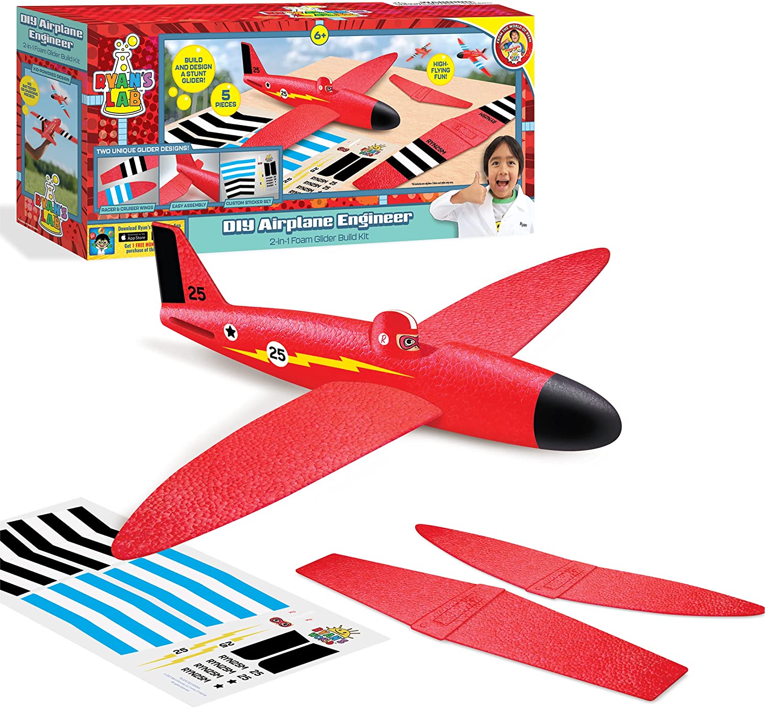 RYANS WORLD Red Titan Toy Airplane DIY Assembly Build Wings Engineer