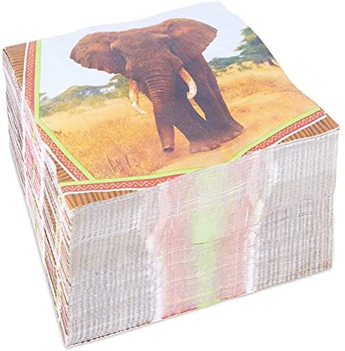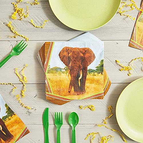 Safari Birthday Party Paper Napkins with Elephants (6.5 x 6.5 Inches, 150 Pack)