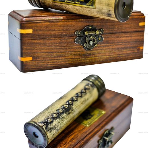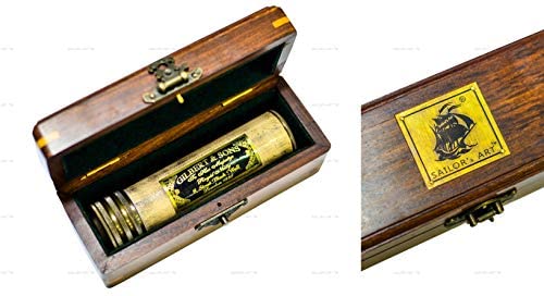 MATERIAL: This kaleidoscope is made of brass with beautiful wooden box to store.. FEATURES: Antique Brass Kaleidoscope Ensures That the mechanisms inside are perfectly protected while providing Elegance, Rugged Exterior And Corrosion Resistance makes the Kaleidoscope long lasting as well as eye pleasing. SPECIALTY: Every turn creates a magical and lustrous montage that will dazzle and delight. UTILITY: The Antique Brass Kaleidoscope for kids and adult, just twist and experience a vibrant light show. UNIQUE GIFT ITEM: This Sailor’s Art Brass Kaleidoscope is the best gift for your children & family.