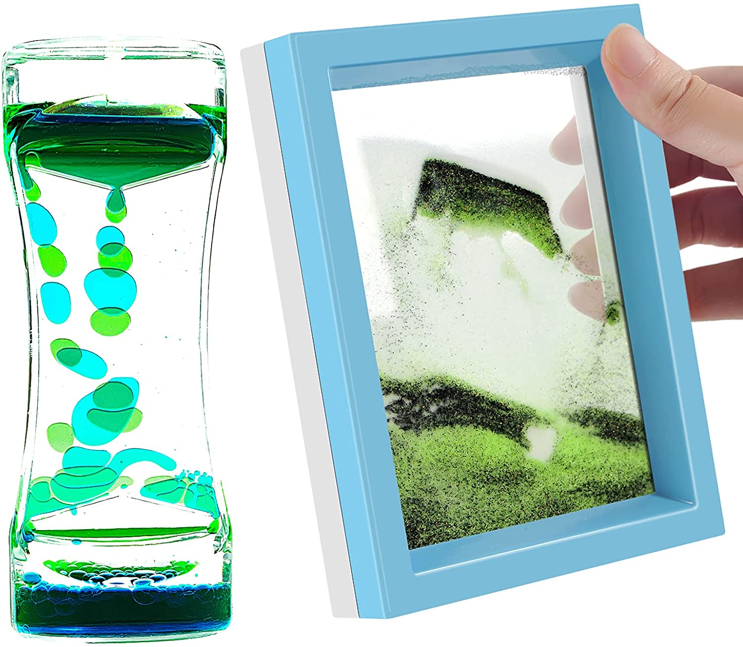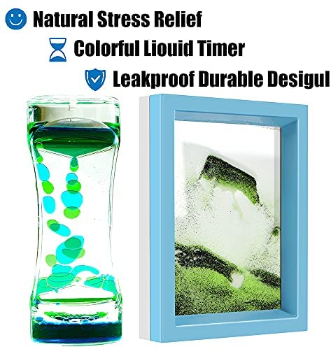 Sand Art Picture and Liquid Motion Bubbler Timer 2 Pack Colorful Hourglass Liquid Bubbler Art Toys Activity Calm Relaxing Desk Toys Voted Best Gift!(Green)