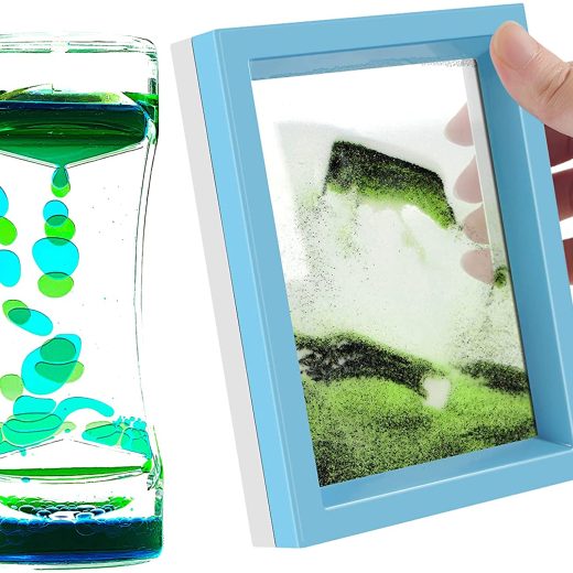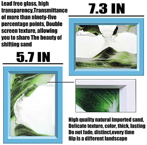 Exquisite Design- moving sand picture is a mesmerizing and dynamic art piece. Rotating the glass, and enjoy the sight of the sand swirling and shifting into clouds and landscapes, ocean and mountains of intricate lines and patterns. Beautiful Sandscape- Use sealed glass, colorless liquid, special sand and appropriate amount of bubbles to create the perfect picture, The soothing motion of sands can relieve stress, relax your eyes,cultivate patience. give you unexpected surprise! Soothing & Relaxing Feeling- Bored at home This Sand Art Liquid Motion Bubbler is a perfect tool to fight boredom. 7“x 5” Sand art pictures Come with 2 Acrylic stand so you can orient the picture either way. will bring a calming, natural and wonder sense to your office and house. It is soothing and interesting to watch them evolve with a new creation with every turn. Perfect Liquid Bubbler Timer Toys- A gentle fidget toy that pleases the eye and eases for comfort. It relaxes with its colorful droplets flowing to the bottom. Sure, our liquid bubblers can be gifted to your kids for hours and hours of fun, but they can also be used by adults to manage their stress or even as decorative pieces to give your office desk an awesome look Great for All Ages- This item is one of those that can be enjoyed by teenagers and adults alike. Great for keeping on your Desk, on the Dresser in your Room, or on your Kitchen Counter… In short, wherever you think it might come in handy.