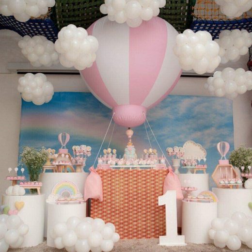 [Specification]: Material: PVC; Inflated size: 5ft tall, 5.2ft width; Color: White + Pink; Note: Please check size carefully before you make order, Please contact seller if you need other sizes. Thank you. [Accessories]: Small Pump + D-rings and gas nozzle on the balloon + ropes + repair pieces(Small white balloons, metal frame support, basket, pink sandbags and some other decorations shown in picture are Not include) [Usage]: Inflate it with air(dont need helium), Can be hung up to the ceiling or put on the ground; D rings and ropes of the top and bottom section for fixing ball. It needs a ceiling or something support on the top, and tie the balloon to the ceiling with a rope. [Application]: Birthday party, Events, Advertising, Opening ceremony, exhibition and so on. [Attention]: Avoid sharp items and tree branches when using this balloon. Do not dragging the balloon directly to prevent scratching. Clean the balloon with wet cloth.