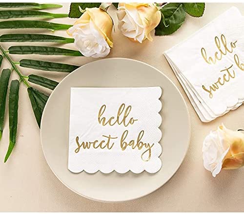 Scalloped Edged Baby Shower Party Napkins (5 x 5 in, Gold Foil, 50 Pack)