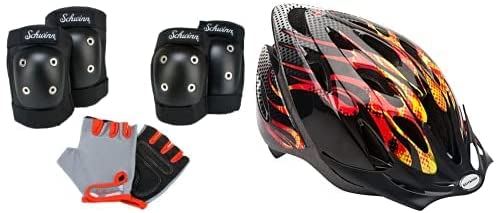 Schwinn Child Thrasher Microshell Helmet and Schwinn Childs Pad Set with Knee Elbow and Gloves Bundle