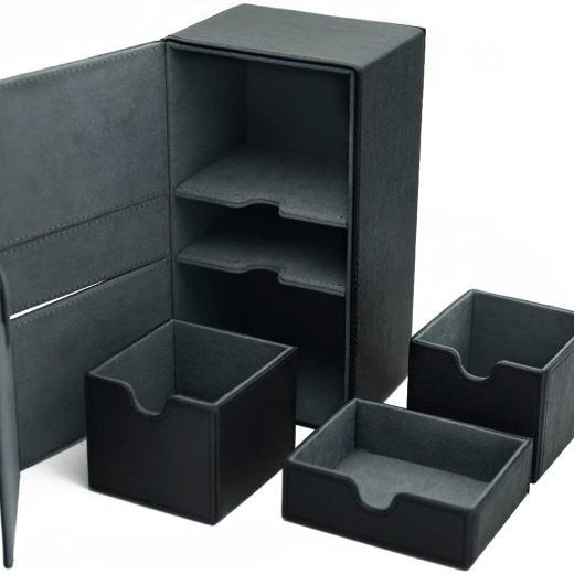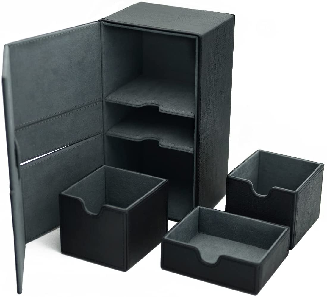 Scimi X-Large Premium Double Deck Box for 200+ Sleeved Cards Pro Twin Flip Deck Case with 3 Tray Fits MTGTCGCCG (Elegant Cross Pattern), Black