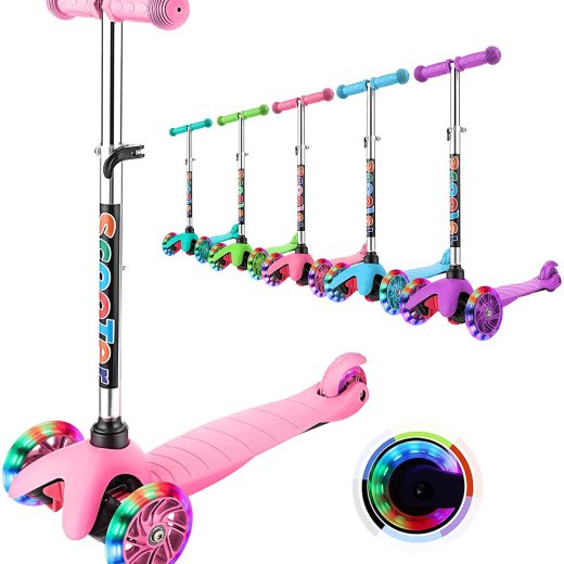 Scooter for Kids Ages 4-8 with LED Light Up Wheels, Kids Scooter 4 Adjustable Height, Toddler Scooter Extra-Wide Deck, 3 Wheel Scooter for Kids for Girls & Boys, 110lb Weight Capacity