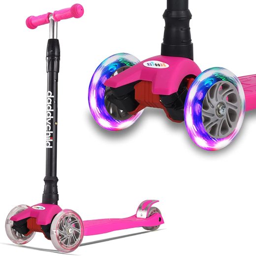 MULTI-COLOR WHEEL LIGHTS: The DADDYCHILD 3-Wheel Kick Scooters for Kids feature colorful LED turning wheel lights that light up in a variety of flashing colors as you scoot, adding a fun twist to the ride! It also makes the scooter stand out