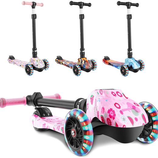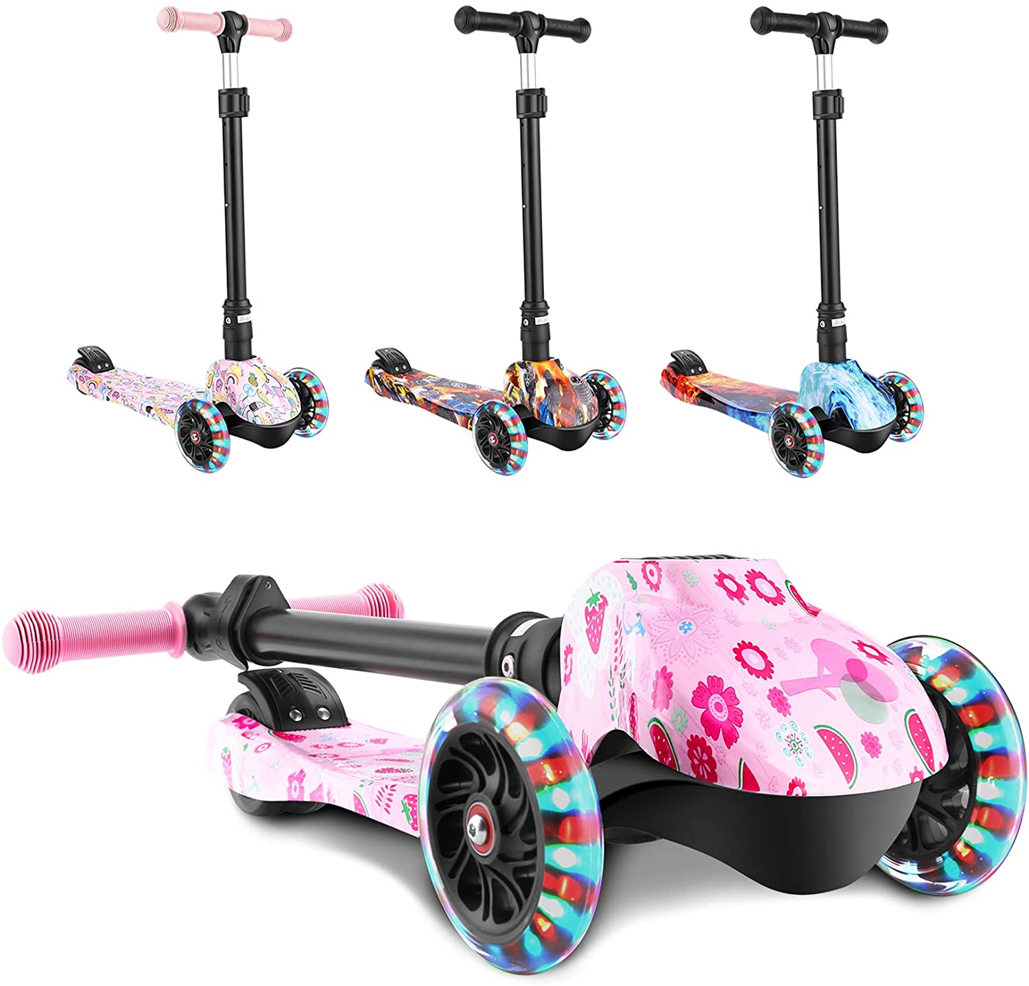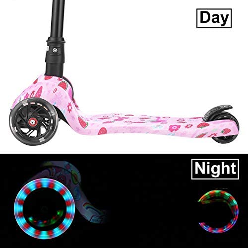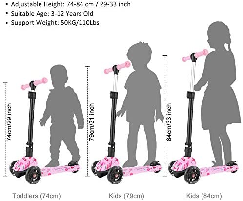 Scooters for Kids, Foldable Scooter for Toddlers Girls & Boys, LED Lights Up 3 Wheels Scooter Adjustable Height, Lean to Steer,Great Gifts for Children Ages 3-12