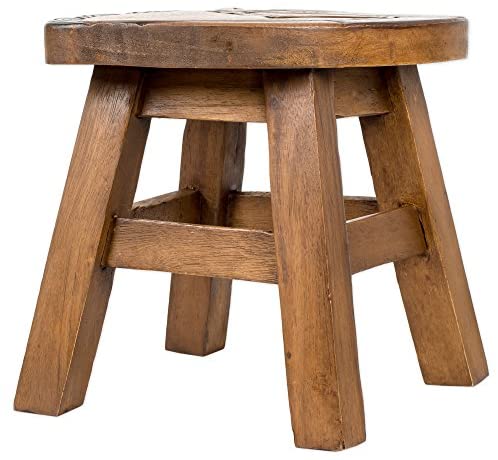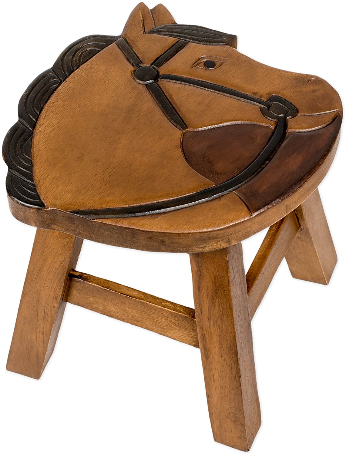 Sea Island Imports Horse Design Hand Carved Acacia Hardwood Decorative Short Stool