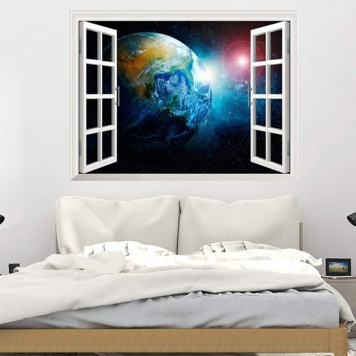 SENGTER Galaxy Sticker Milky Way Window Wall Decal Removable Earth Pattern Window View Wall Stickers for Kids Room Living Room Bedroom Nursery Decor